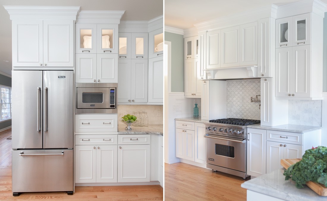 - Go vertical! In a room with limited square footage we often forget that the wall space can be a designers best friend! We transformed this kitchen with custom millwork to build the cabinetry and appliances up vertically. Remember to utilize all your wall room from floor to ceiling!